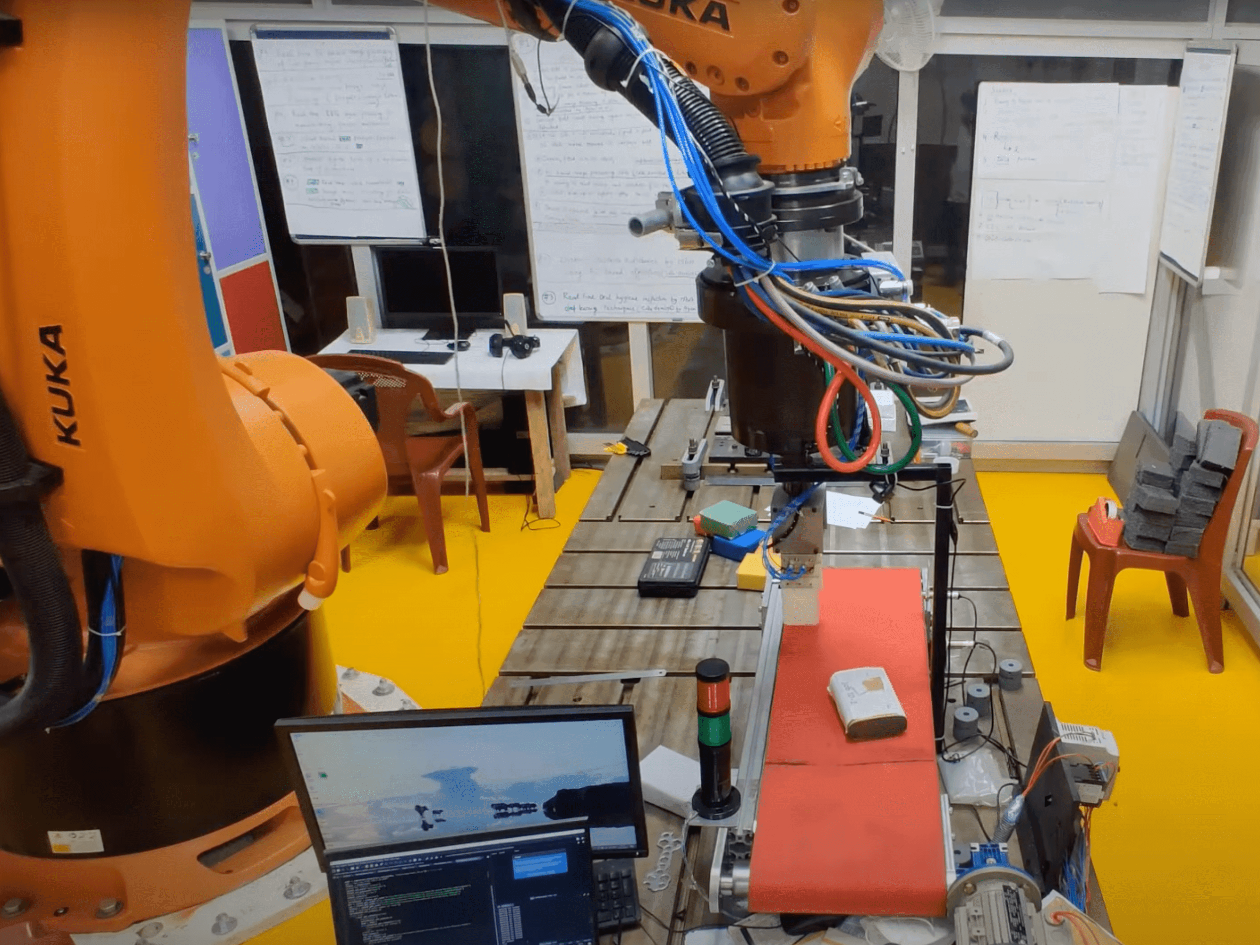 Used Python to connect the KUKA robot controllers through the cloud to feed the 6D coordinates and automate the process in an assembly line.