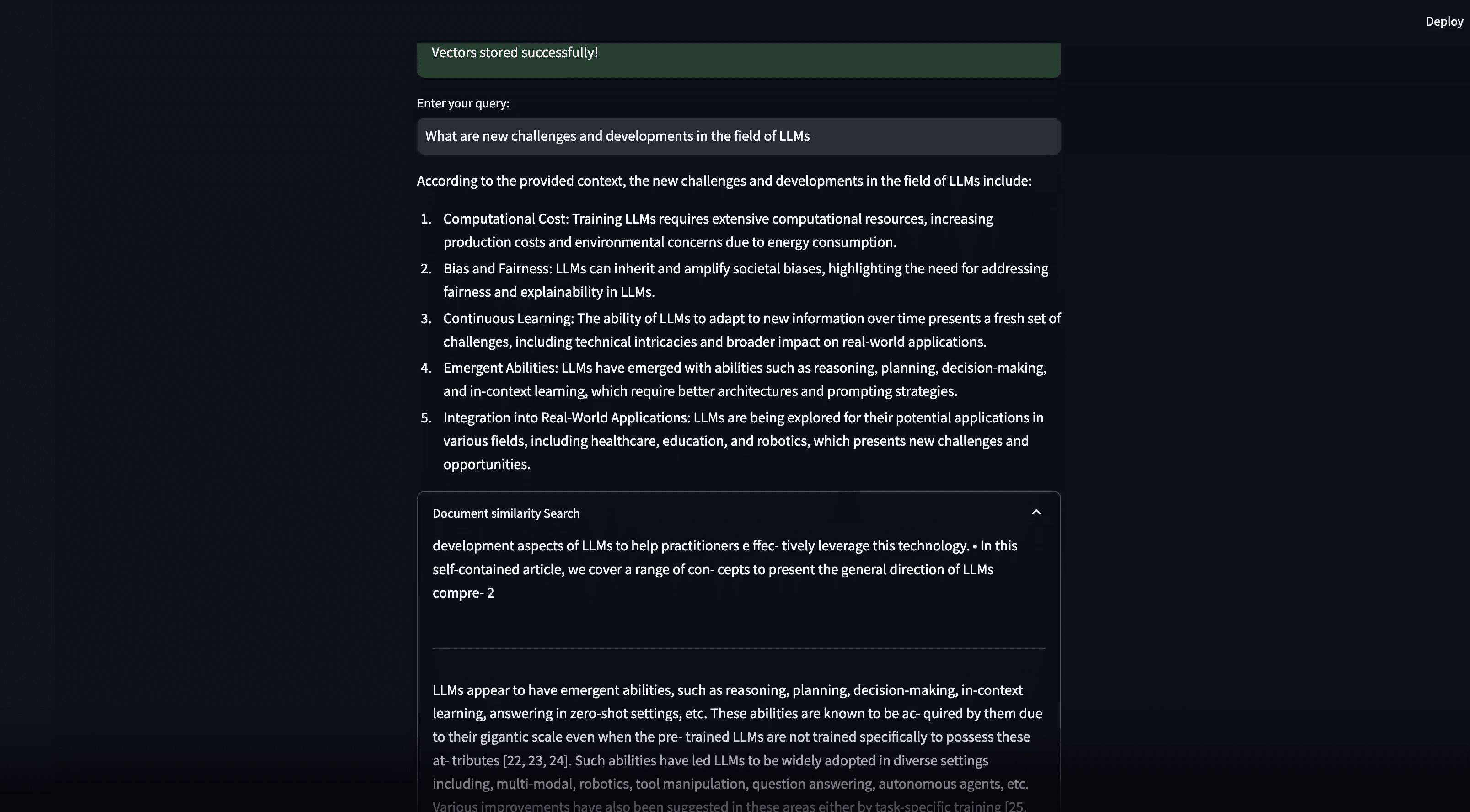 Groq API Integration: Used Groq API for embedding retrieval and similarity search.